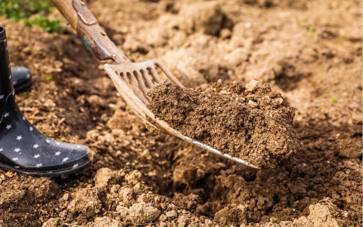 אוורור קרקע: עיבוד קל עם קלשון פותח את שכבת פני השטח ומאפשר למים לחלחל במקום להצטבר.