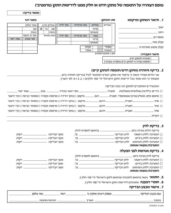 כך נראה דוגמה של טופס אישור תקינות הגז (טופס נורמטיבי):
