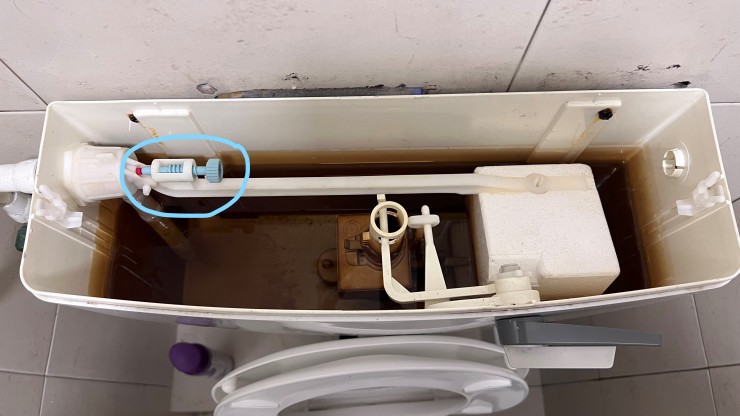 כוונו את המצוף: ליד המצוף יש בורג בצבע אדום או כחול, סובבו אותו עם כיוון השעון, זה עשוי לעצור את הנזילה.